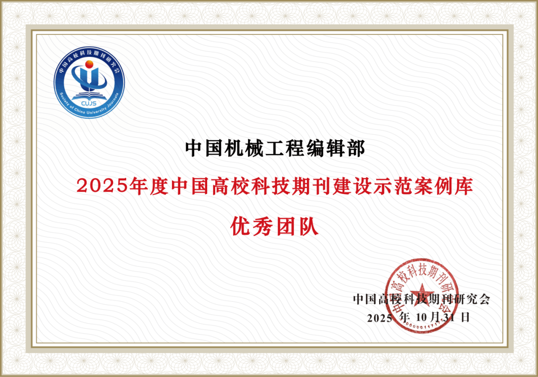 2025年11月6日至9日,中国高校科技期刊研究会第29次年会正在陕西西安成功举办。本届年会以“办事立异策源·培育一流方阵:新时代高校科技期刊的”为从题,由西安交通大学期刊核心协办,并获得了近20家国表里期刊办事机构的支撑。会议汇聚了70余位专家学者进行演讲交换,现场参会代表跨越700人。正在为期四天的会期中,取会嘉宾环绕年会从题深切切磋、集思广益、前瞻共创,加速扶植一流期刊集群,加强学术引领能力,为展现高程度科技、办事国度严沉计谋需求、支持实现高程度科技自立自强建牢根本。 正在本次年会中,《中国机械工程》编纂部有幸获评“2025年度中国高校科技期刊扶植示范案例库·优良团队”。这一荣誉是对我们过去工做的莫大激励,更是我们将来前行的一份轻飘飘的义务。坐正在新的起点,编纂部全体同仁将以此为敦促,不忘初心,砥砺前行,力争正在办事科技立异的新征程中展示新做为、贡献生力军。《中国机械工程》王艳丽编纂、王旻玥编纂入选“2025年度中国高校科技期刊扶植示范案例库•优良编纂案例”。王艳丽等编纂撰写的论文《多措并举摸索“非杰出”中文科技期刊高质量成长之》(编纂学报,2024,36(6):651-655)获评“中国高校科技期刊扶植示范案例库·铜笔论著”。将来,编纂部将以此为激励,继续扎根学术,办事立异,力争扶摇直上,更进一步,为我国科技期刊事业的成长添加动力。前往搜狐,查看更多。